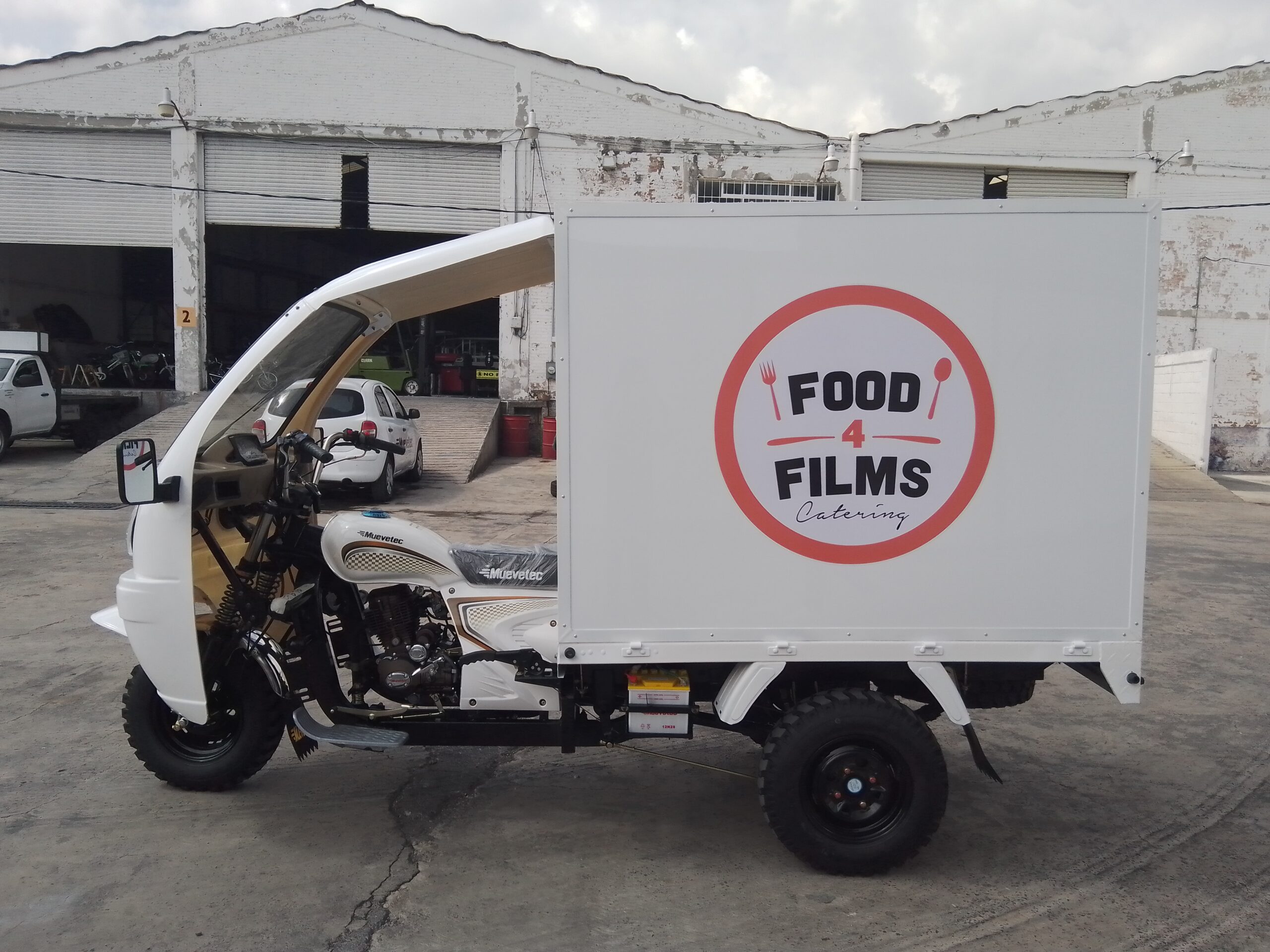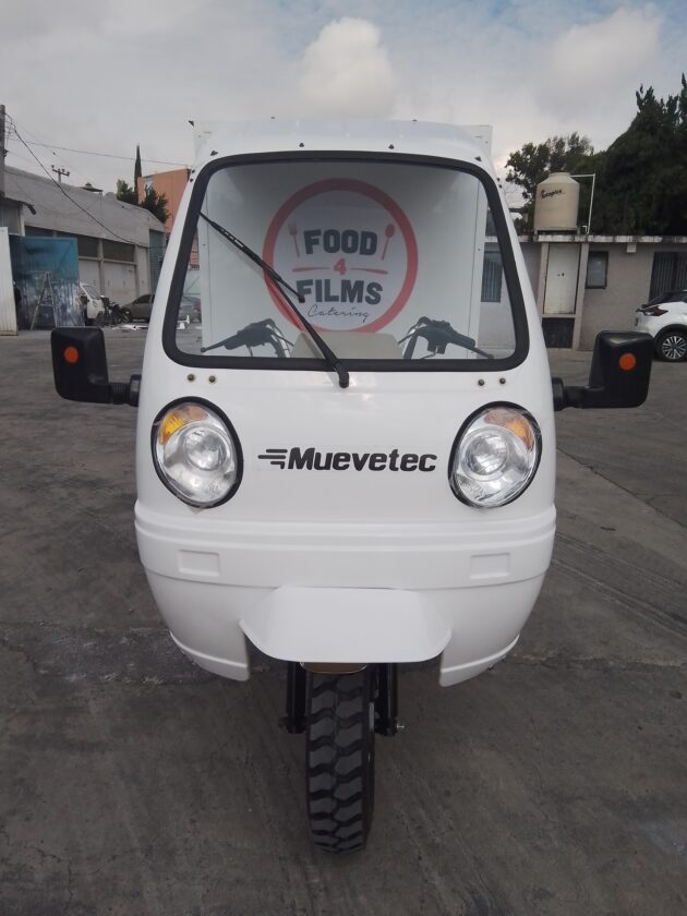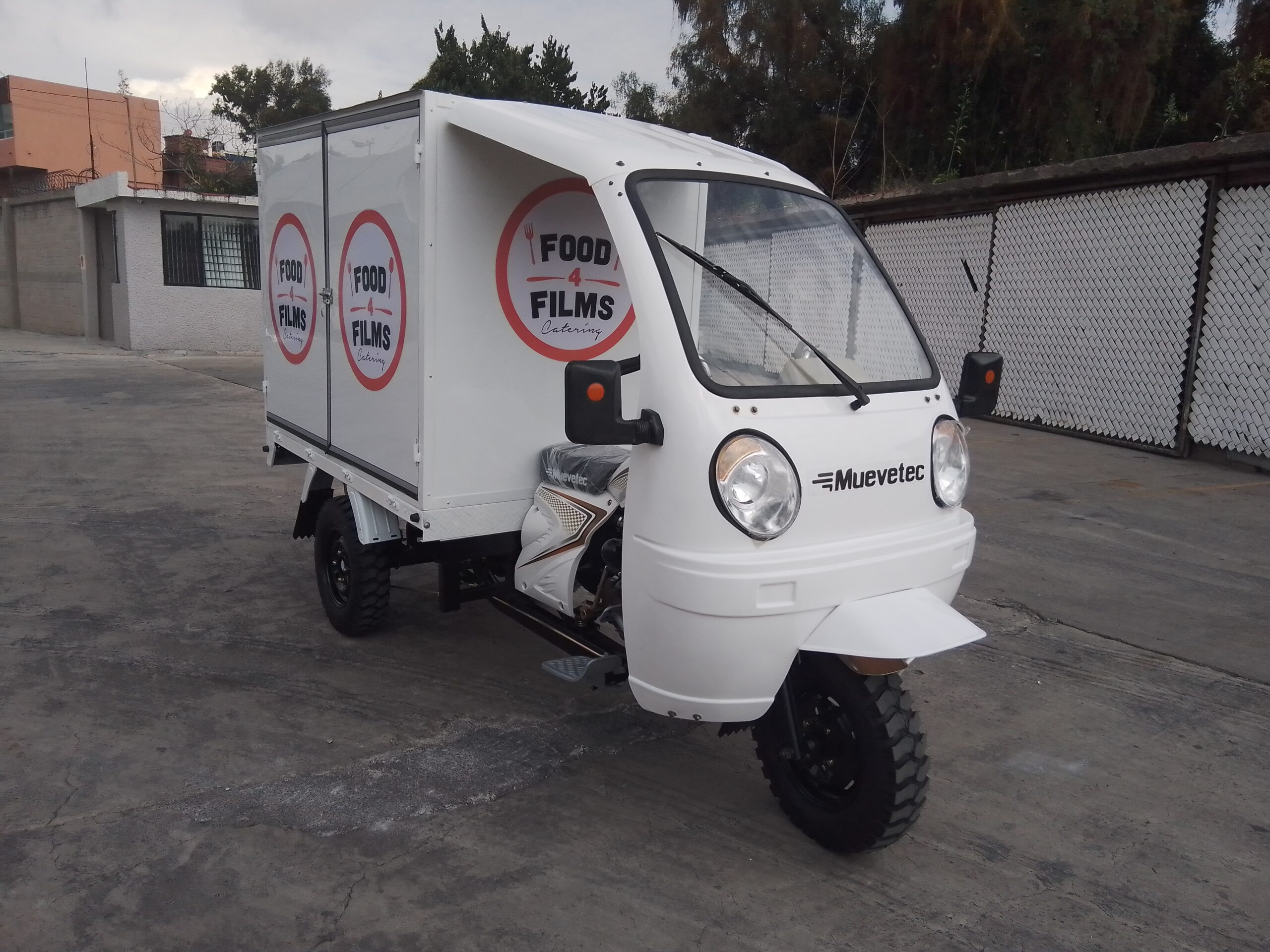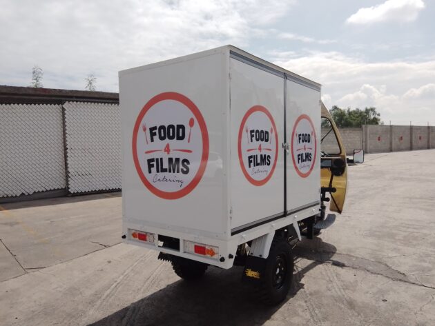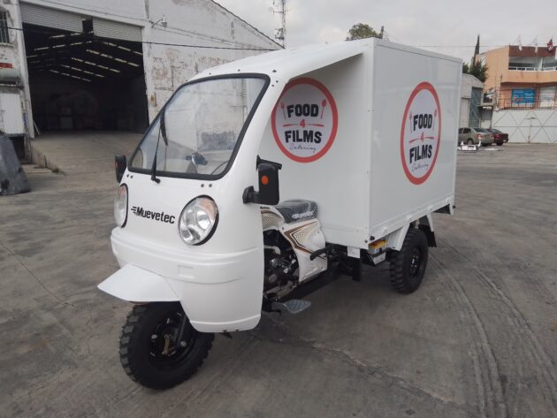 - Motocarro caja cerrada con puertas laterales: estructura robusta que facilitará la carga y descarga, con vinil publicitario exterior para impulsar tu marca mientras circulas.