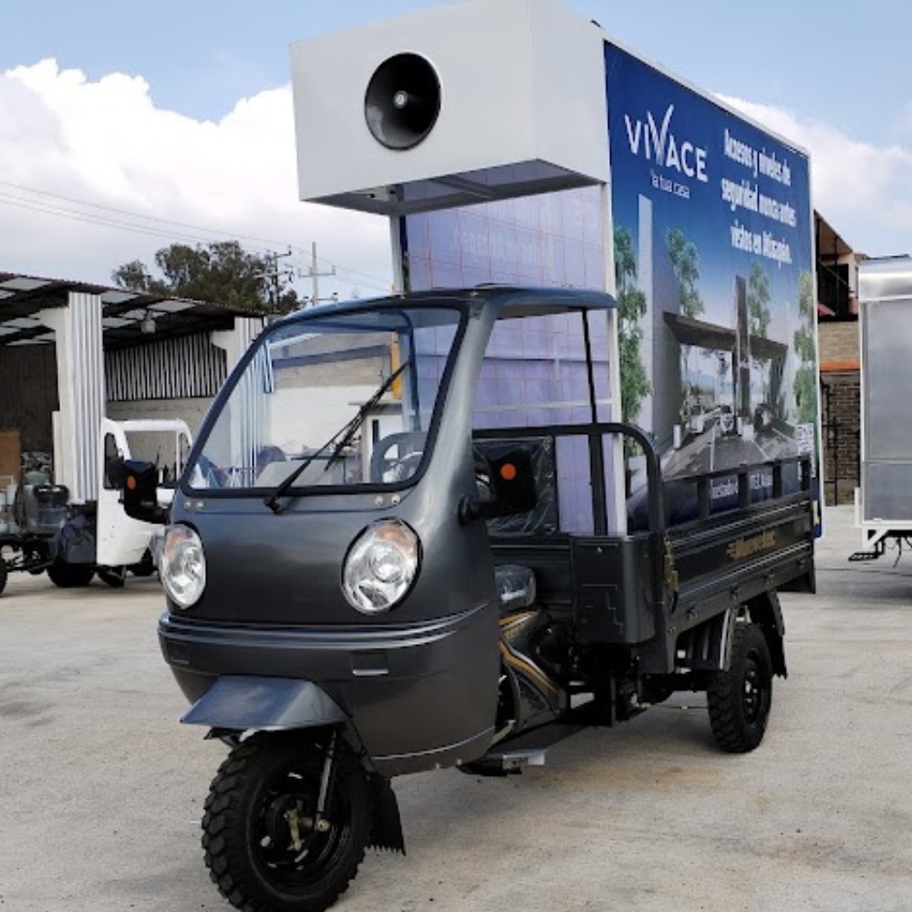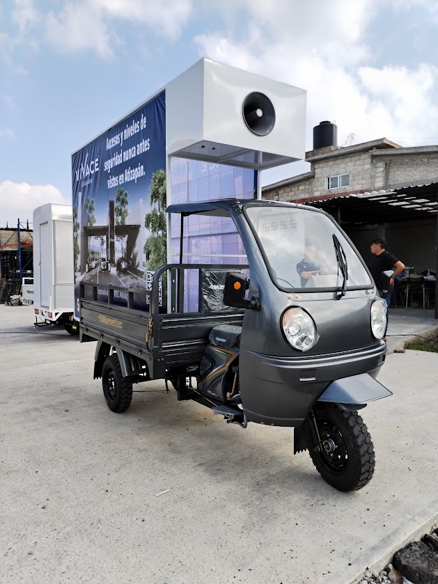 • Perifoneo XL integrado: dos trompetas de alto alcance permitir谩n emitir anuncios en audio mientras circulas, logrando recordaci贸n por v铆a visual + sonora.