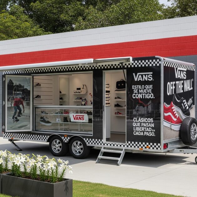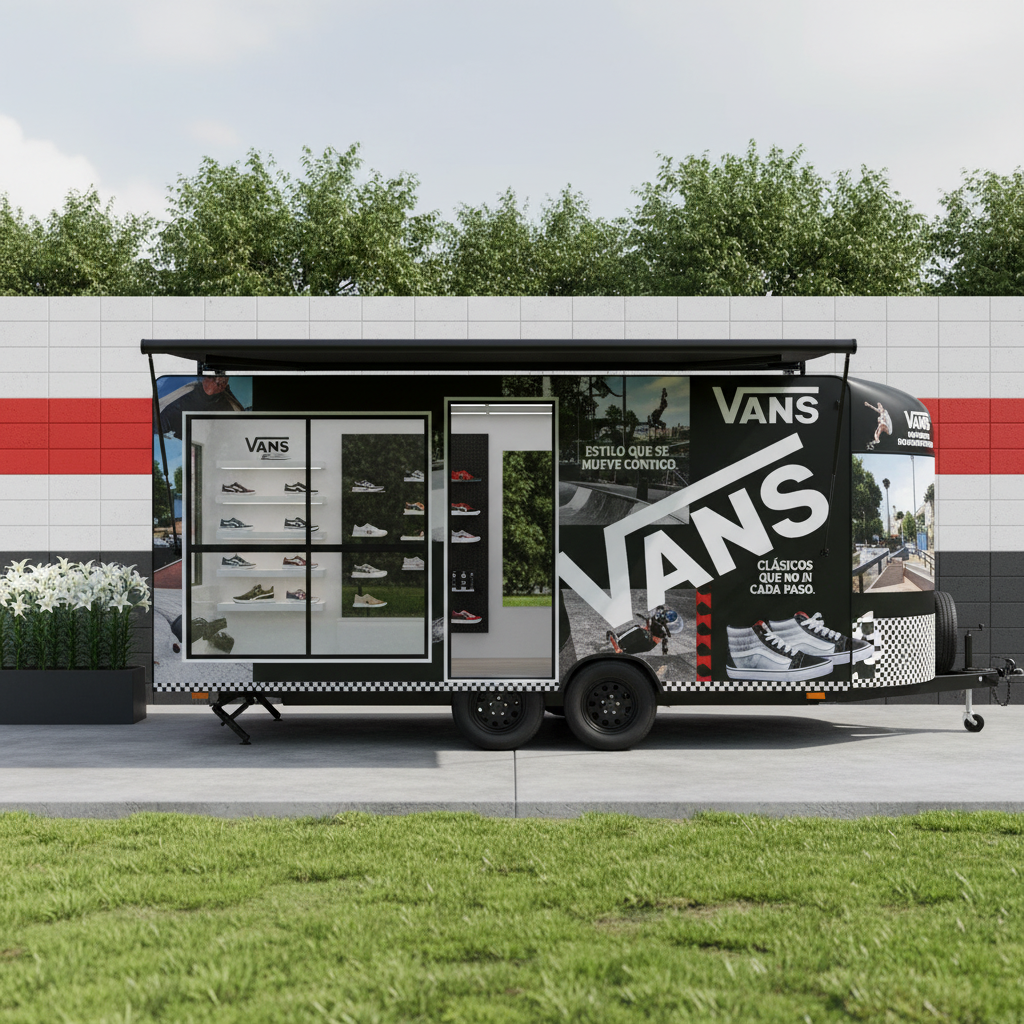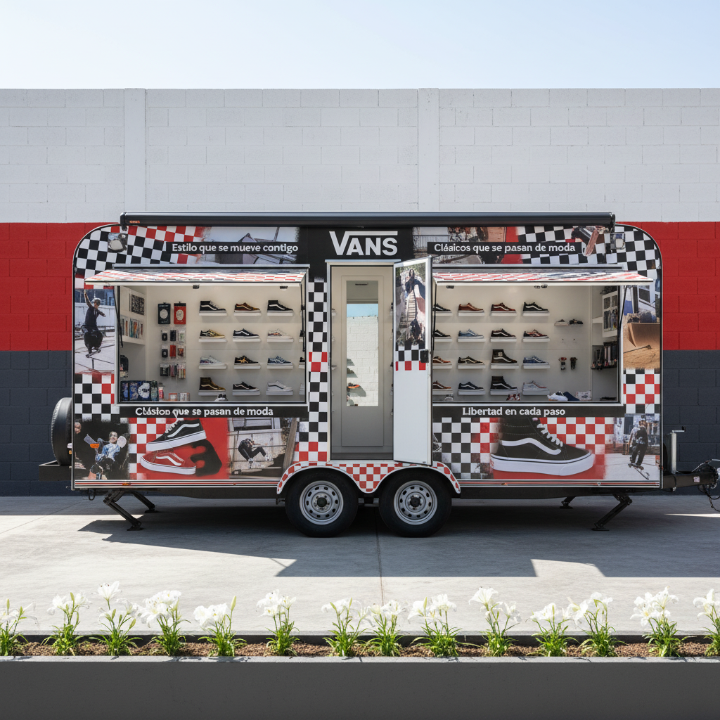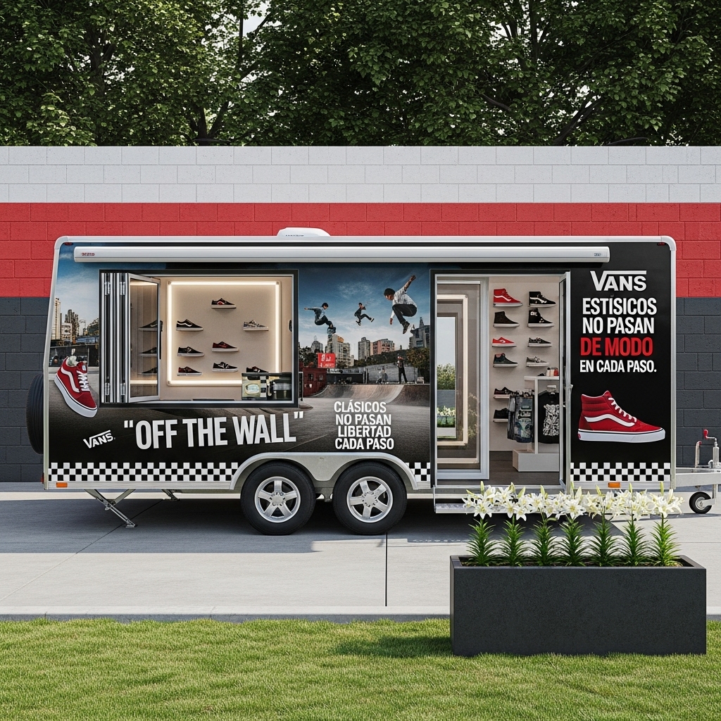 - Remolque Tienda Vans: showroom m贸vil + punto de venta + activaci贸n de marca sobre ruedas; lleva la experiencia Vans a conciertos, torneos de skate, festivales y zonas urbanas concurridas, con mucho m谩s impacto que un stand convencional.